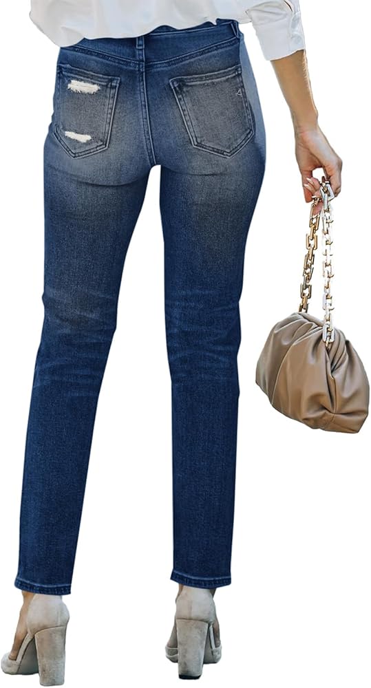 Stylish Distressed Design:These high waisted jeans feature trendy ripped details and a frayed hem, adding a touch of vintage streetwear flair. Perfect for creating a cool, casual look that stands out in daily life.