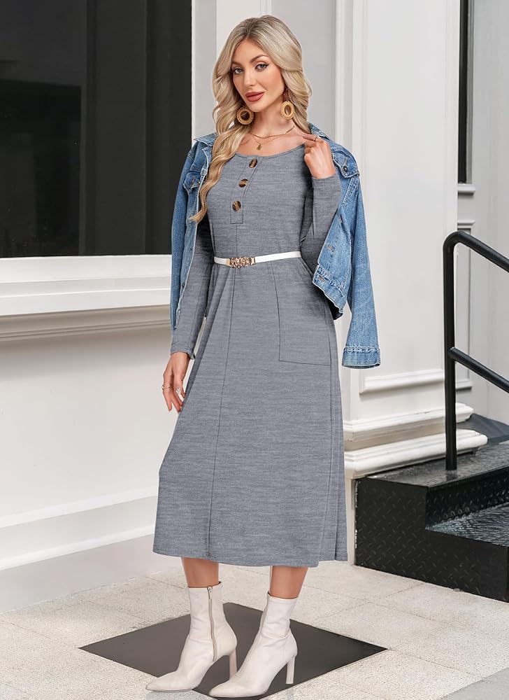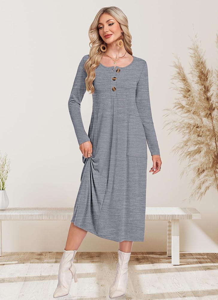 【All-Season & All-Person Fit】 This casual maxi dress fits easy: sleek for office workers,neat for teachers,practical for Household Managers,and comfy for Expectant Mothers—its widened hem offers better room for baby bumps,Saves time for busy crowds! Wear alone in spring/autumn;layer with scarves/coat in winter (stylish + warm),Truly "one dress for three seasons"!
