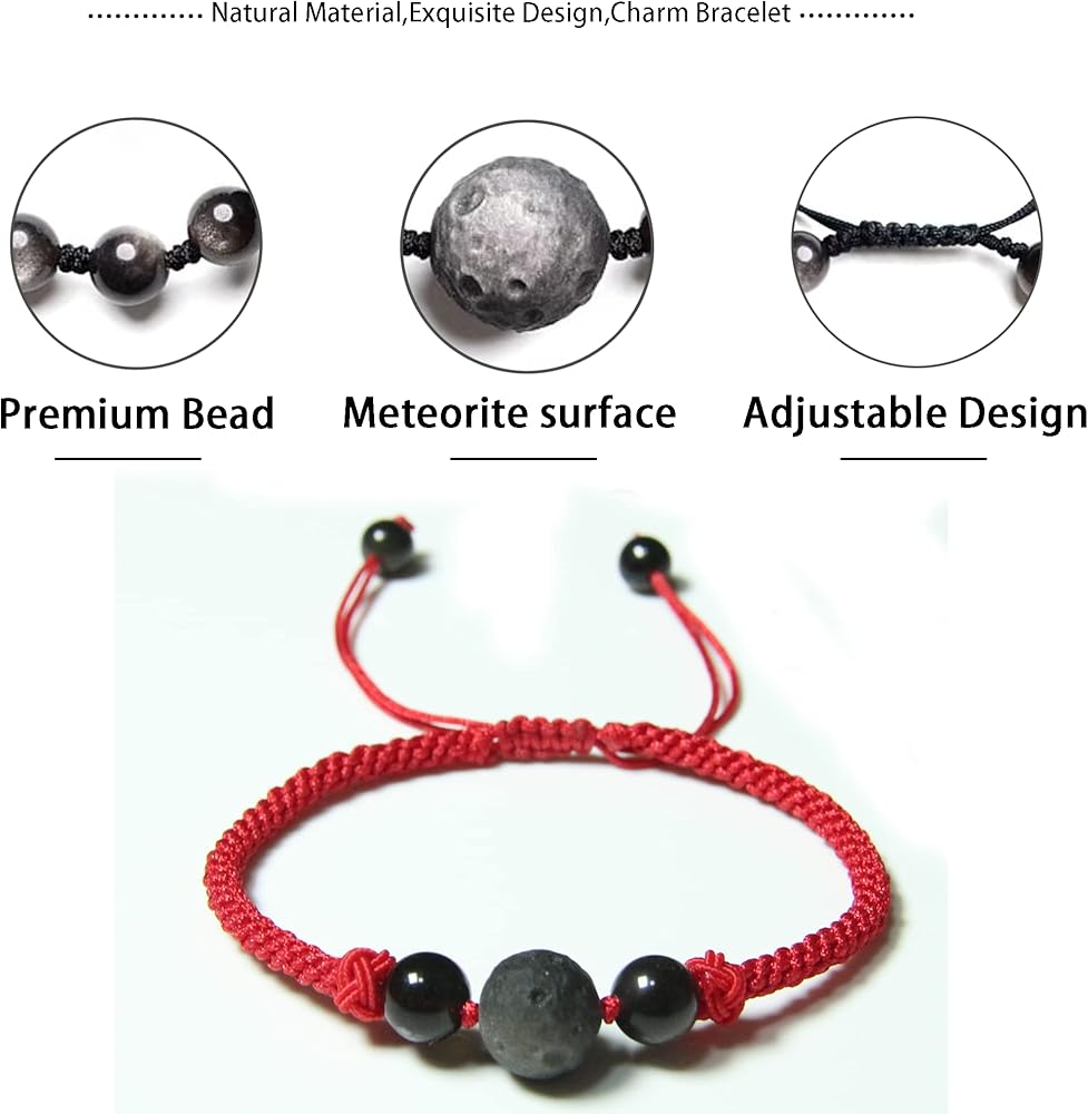 ✅【Adjustable Size】Silver obsidian bead size is 8mm, meteorite ball size is 13mm, beaded bracelets stretchable size is 6" - 8",fit on most people's wrists.