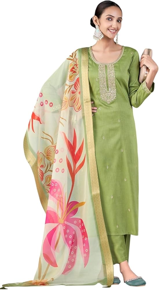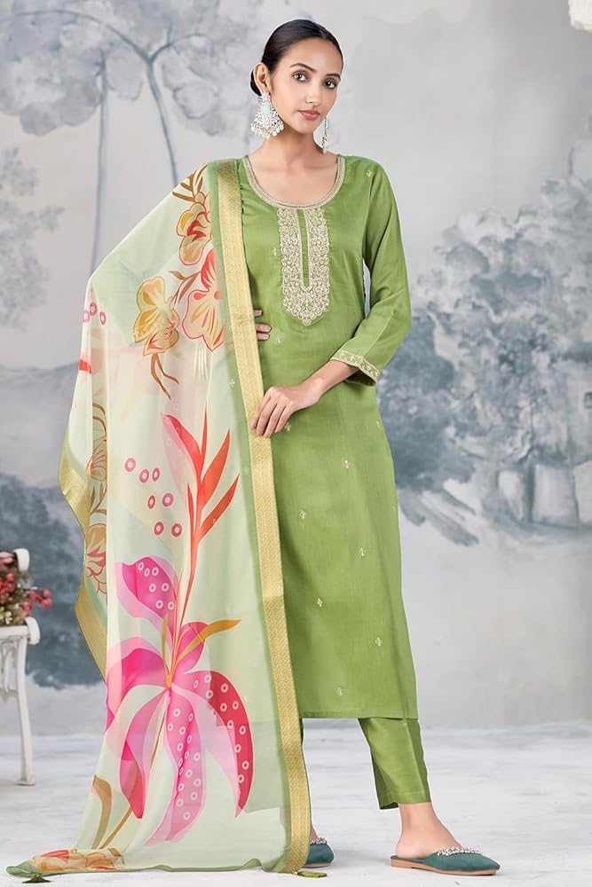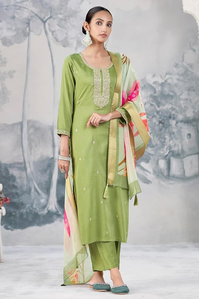 Bring home the elegance of traditional Indian fashion with this Women's Silk Embroidered Kurta and Pant Set with Dupatta. Designed for modern women who appreciate classic ethnic style, this three-piece ensemble is perfect for festive celebrations, weddings, cultural gatherings, or stylish daywear. Made from a premium silk blend, the straight-cut kurta features detailed embroidery, adding grace and refinement to your look. Paired with a matching pant and lightweight dupatta, this outfit is a complete ethnic set that combines timeless tradition with contemporary comfort. Dress it up with ethnic jewelry and heels for an effortlessly chic statement.