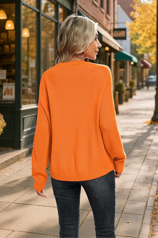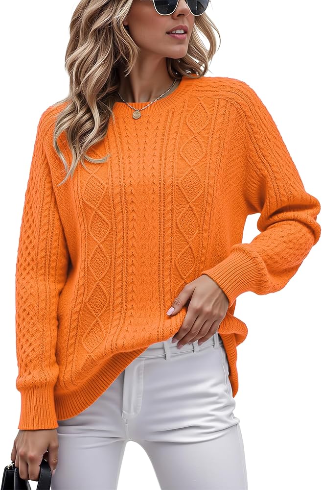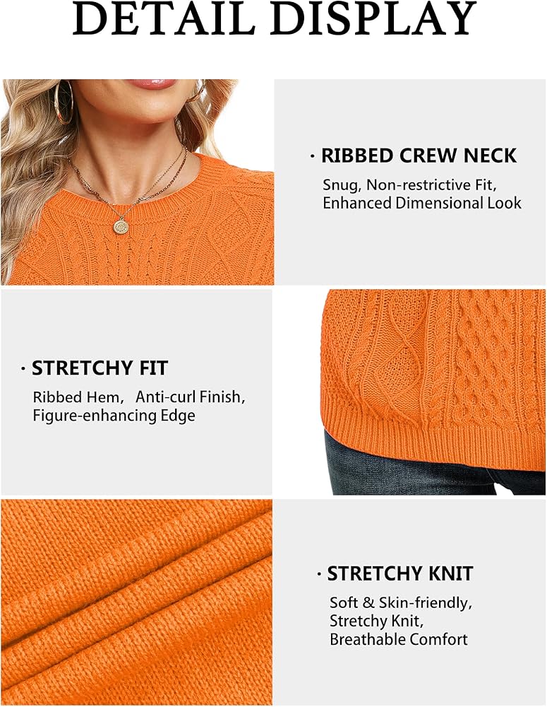 DESIGN: Classic cable knit sweater with ribbed neck, cuffs, and hem. Lightweight long sleeves but keep you warm in fall. This fall sweaters for women features timeless texture and stretchy fit for easy movement. Simple pull-on style.