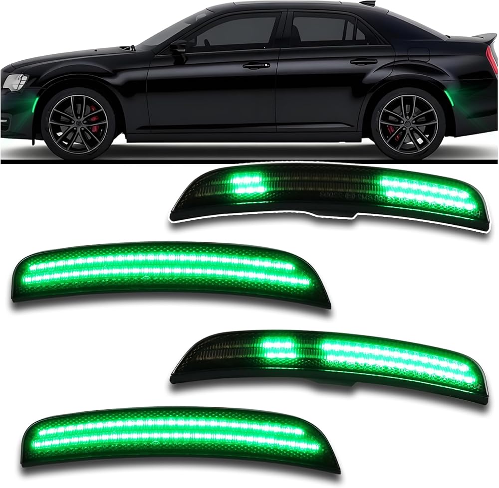 Dynamic Smoked LED Side Marker Lights for 2015-2024 Chrysler 300 - Dynamic Sequential Turn Signals | Green Front & Rear | Plug & Play 4-Piece Direct Fit (Green)