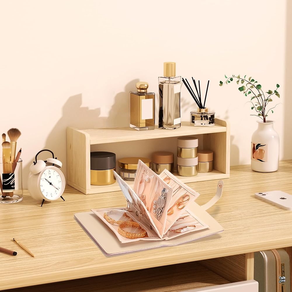 Travel Jewelry Case: Compact & tangle-free storage,Measuring just 8.4" x 6", our jewelry travel case fits effortlessly into handbags, backpacks, or carry-ons. Its sleek book-style design prevents necklaces, earrings, and bracelets from tangling during transit. Ideal for business trips or weekend getaways, this travel jewelry organizer keeps accessories secure and neatly arranged.