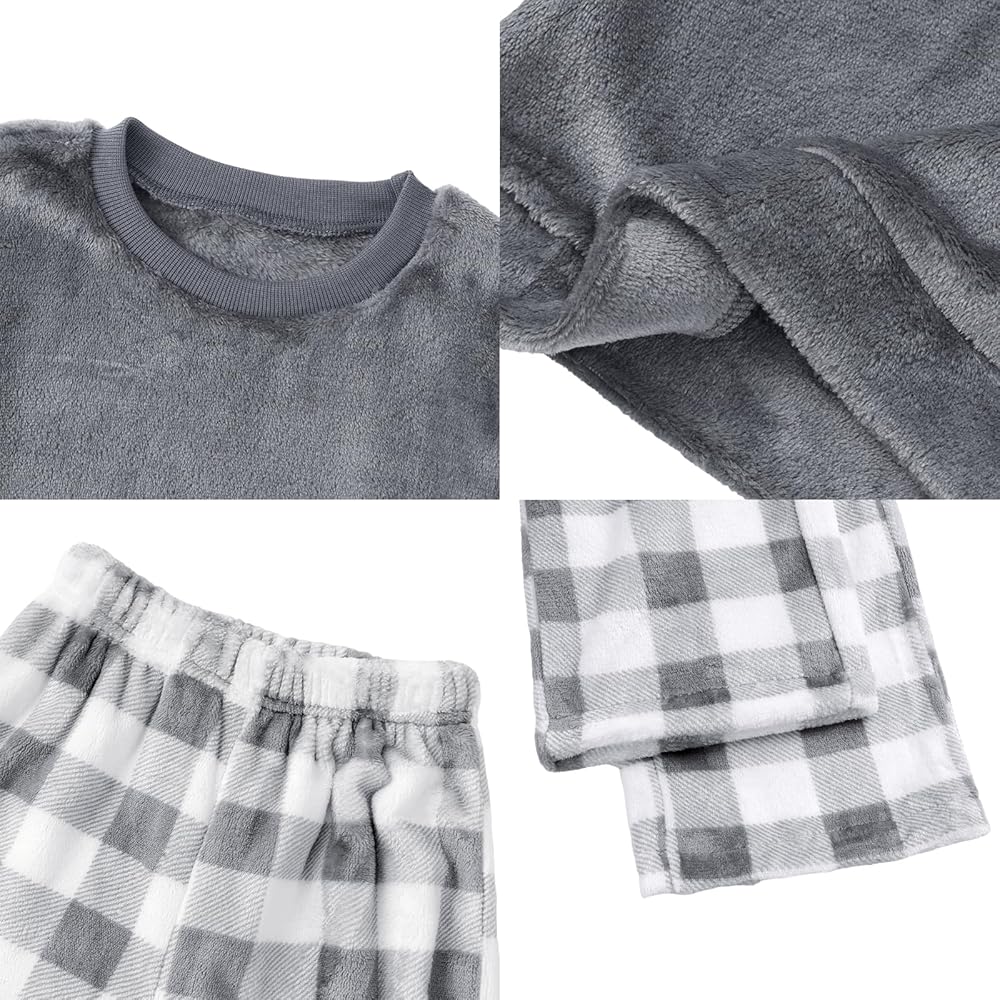 Girls pjs plaid pajamas set come with a pullover crewneck top, elastic waistband pants are plaid pattern with a wide-leg style. It's comfortable to wear, keep warm and soft while resting at home or lounging around the house. Comfortable loungewear set for your kids!