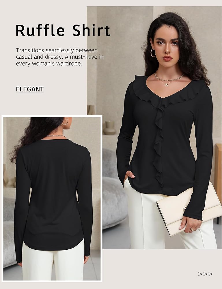 VERSATILITY: Pair this ruffle shirt with jeans or skirts for casual days, layer it under blazers in cooler weather, or let it shine alone with statement jewelry for dressy occasions