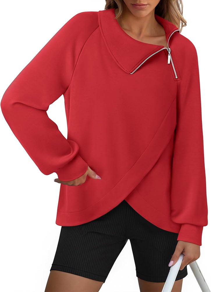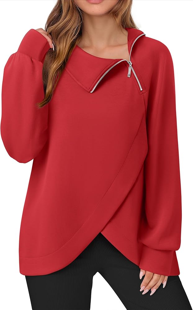Exquisite Design: This Cute Sweatshirts For Women features an asymmetrical zip, integrated with a stand-up collar design. Sweatshirt for women allows for adjustable ventilation, the collar can be flexibly styled into various looks such as stand-up collar, turtleneck and lapel collar.