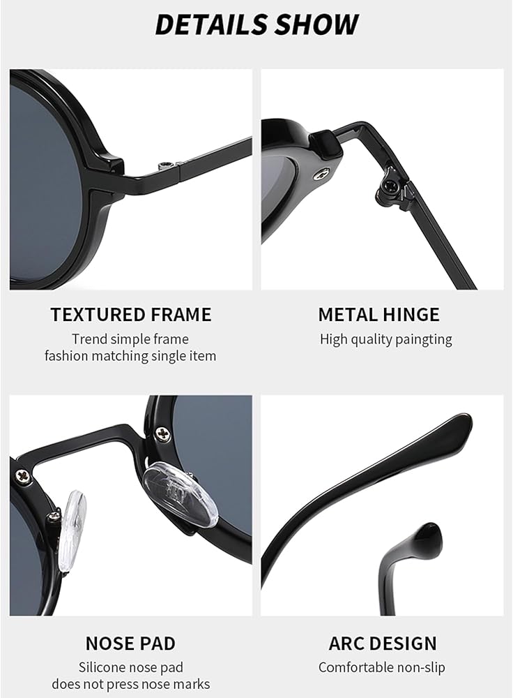 Premium Lightweight Build:Durable frames with flexible metal detailing. Featherlight circle sunglasses comfortable for all-day wear without slipping.