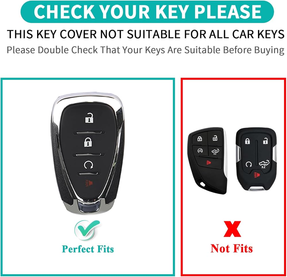 【Fits Model】Full Protection Key Case for Chevy Equinox Malibu Cruze Tahoe Camaro Traverse Blazer Volt Bolt Sonic Spark Impala Trax. Depending on the model and year of the car, the car key will vary, so please DOUBLE CHECK your key shape before purchasing.