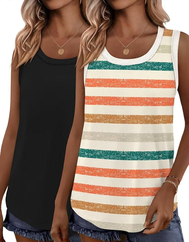 Bliwov 2 Pack Womens Tank Tops Scoop Neck Summer Fall Winter Fashion Sleeveless Shirts Beach Loose Casual Workout Clothes