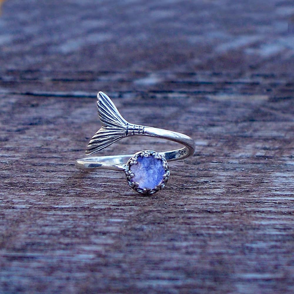 From the broken remains of antique glass and bottles reclaimed from the natural wooded habitats in rural PA, our fabulous Mermaid Ring! Unleash your inner Mermaid with our stunning wrap around design making this ring fully adjustable to fit any finger, and featuring a 6mm glowing glass gem hand set made from the broken remains of vintage blue mason jar taken from the woods in an effort to remove this hazard from the wildlife! Each piece includes "The Story of the Glass" detailing the history and age of the glass used.