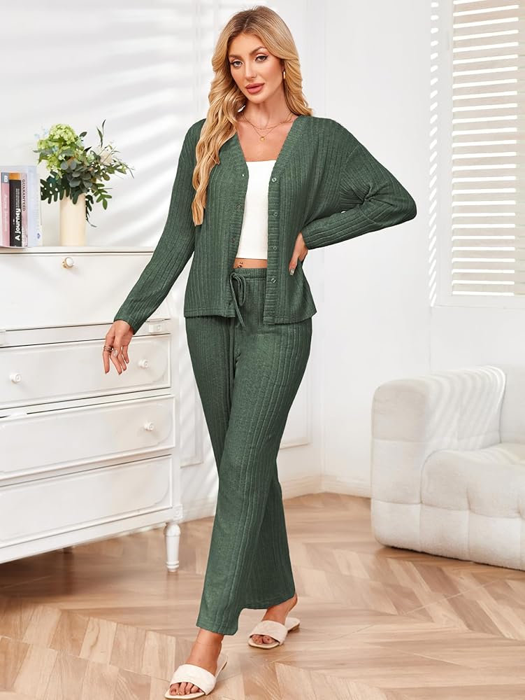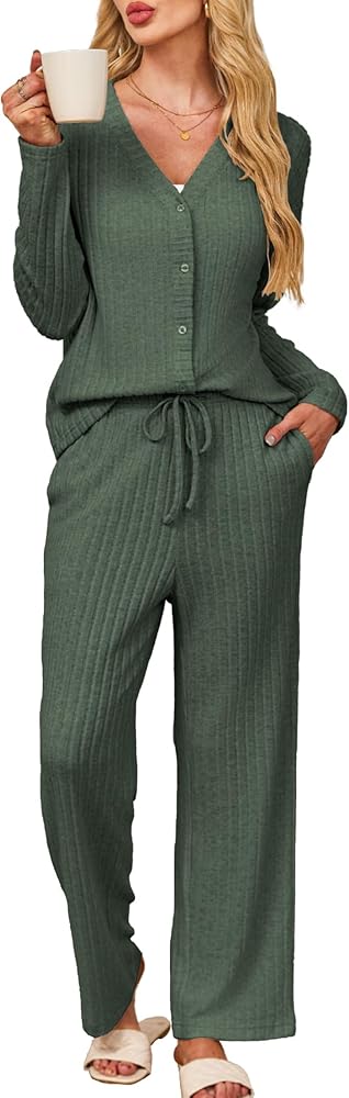 Match Ideal: Button down sleepwear can be used as a cardigan, easily match with cami tank, skirt, skinny pants, jeans. Wide leg pants can be worn with all t-shirts for a casual look. 2 pieces sets match with sneakers, sports shoes perfectly