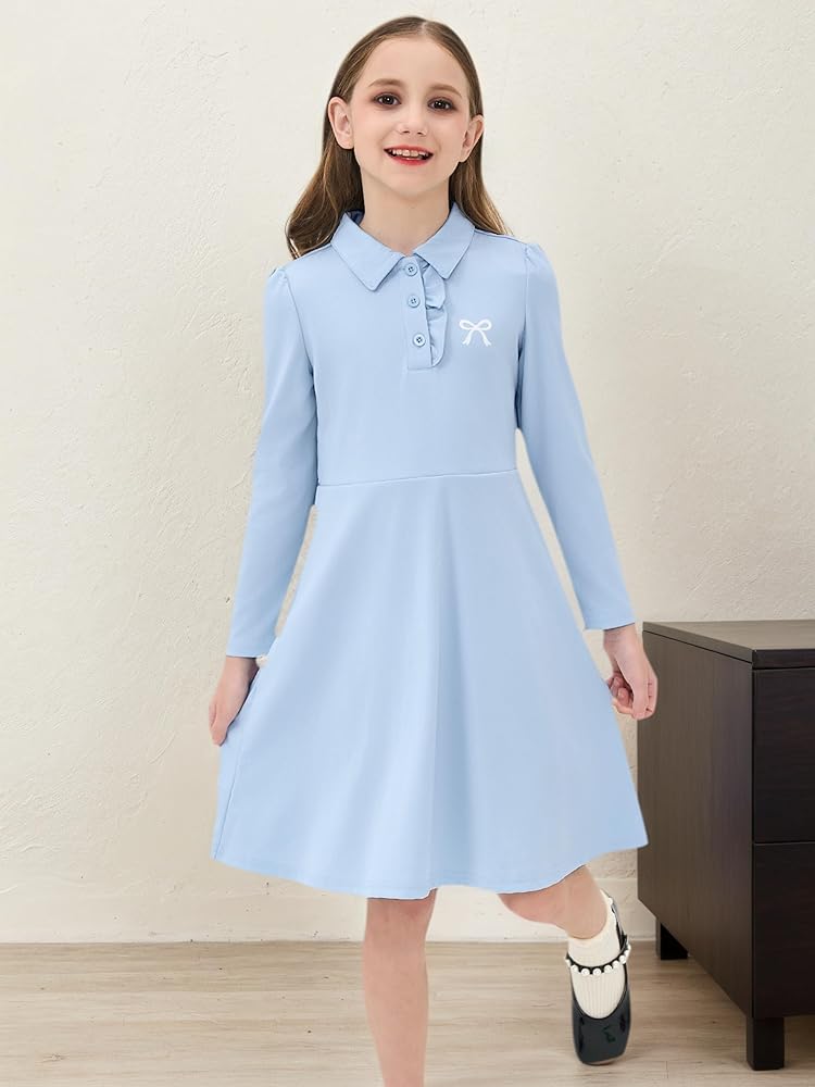 🎀 Occasions: Elegant buttons down long sleeve shirts dresses for kids, suitable for back to school, party, casual, daily wear, dance, speech, ceremony, spring outing etc, simple but easy to match every occasions.