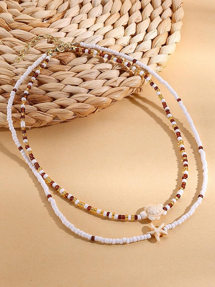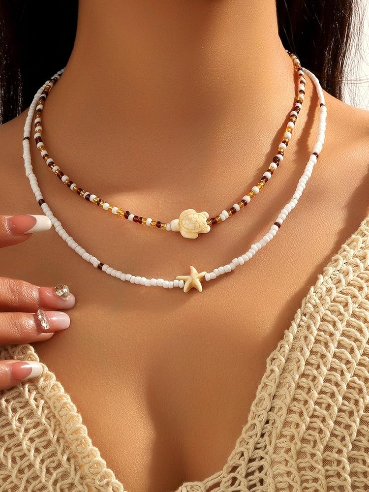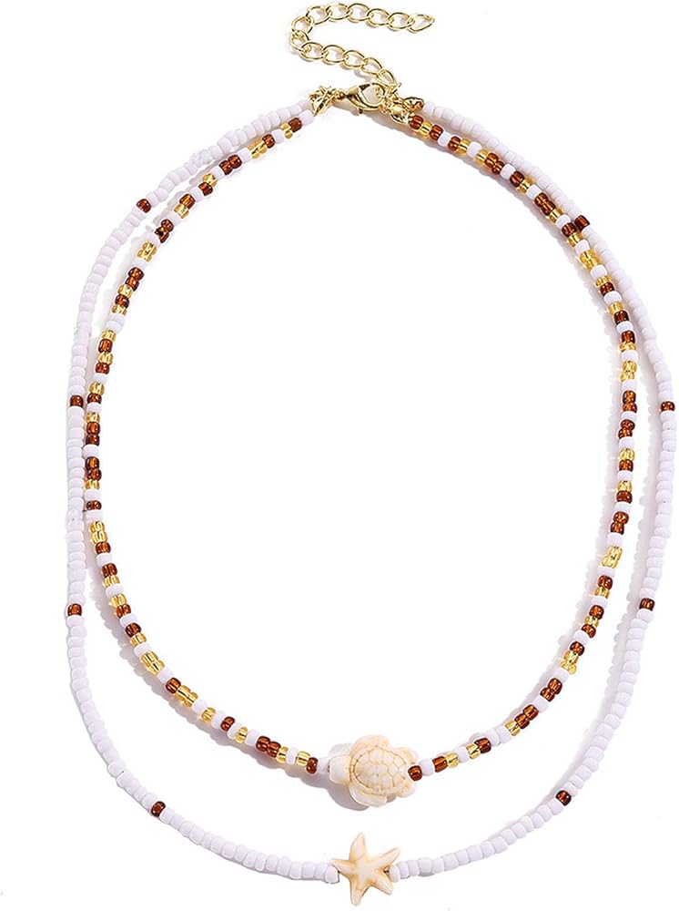 Necklace Size: Our beach-inspired layered necklace features a seashell necklace and a longer starfish pearl strands ,elegant and stylish, creating a fun, bohemian vibe that's perfect for beach holiday or everyday wear,For detailed dimensions, please refer to the picture