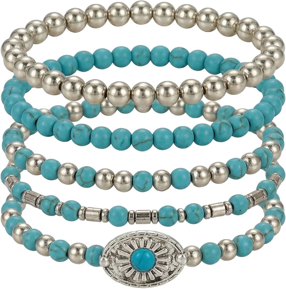 Stackable Bracelets Set: The bracelet features multi-layered wearing, integrating elements such as colorful beads and turquoise, and is paired with feathers, bull heads, and cowboy boot pendants, creating a unique design that blends Bohemian and western cowboy styles.It is rich in layers and has a distinct personality.