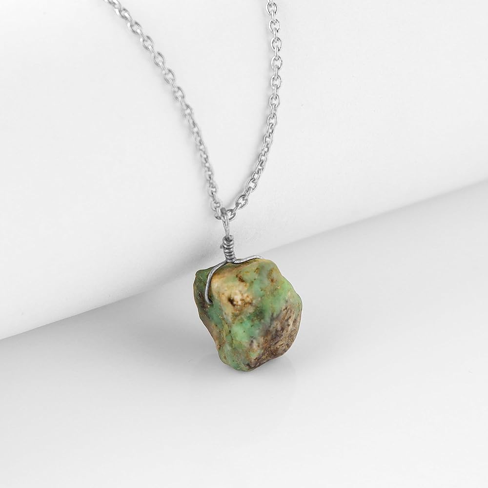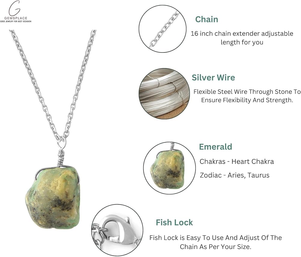 Raw Crystal Necklace, Emerald Rough Stone Necklace, Dainty Stone Pendant, Healing Crystals Healing Stone Pendant for Beauty, Gemstone size: vary from 15-20 mm