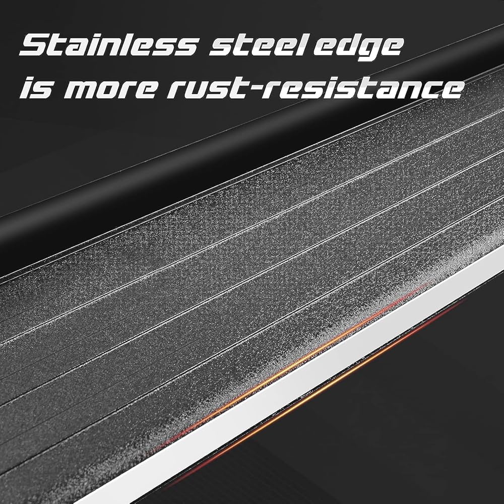 UNIQUE DESIGN: The Side Of The Running Board Is Designed With A Stainless Steel Skirt, Which Increases The Surface Finish And Makes The Steps Look More Textured While Improving The Rust Resistance Of The Steps.Non-rubber Design, Will Not Crack.