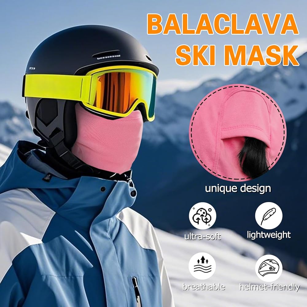 SIDE OPENING DESIGN: Ski mask features side openings for easy headphone access and added comfort. Perfect for women with long hair, allowing hair to be pulled out for a relaxed fit.
