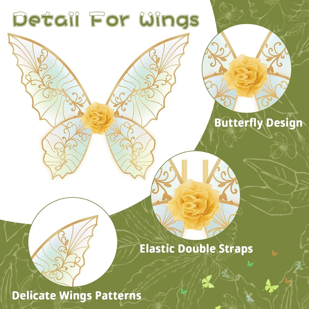 Versatile Uses: An ideal accessory for flower girls, costume parties, dance recitals, school theater, or wedding celebrations. These wings elevate any fairy outfit and make a wonderful gift for loved ones and friends.