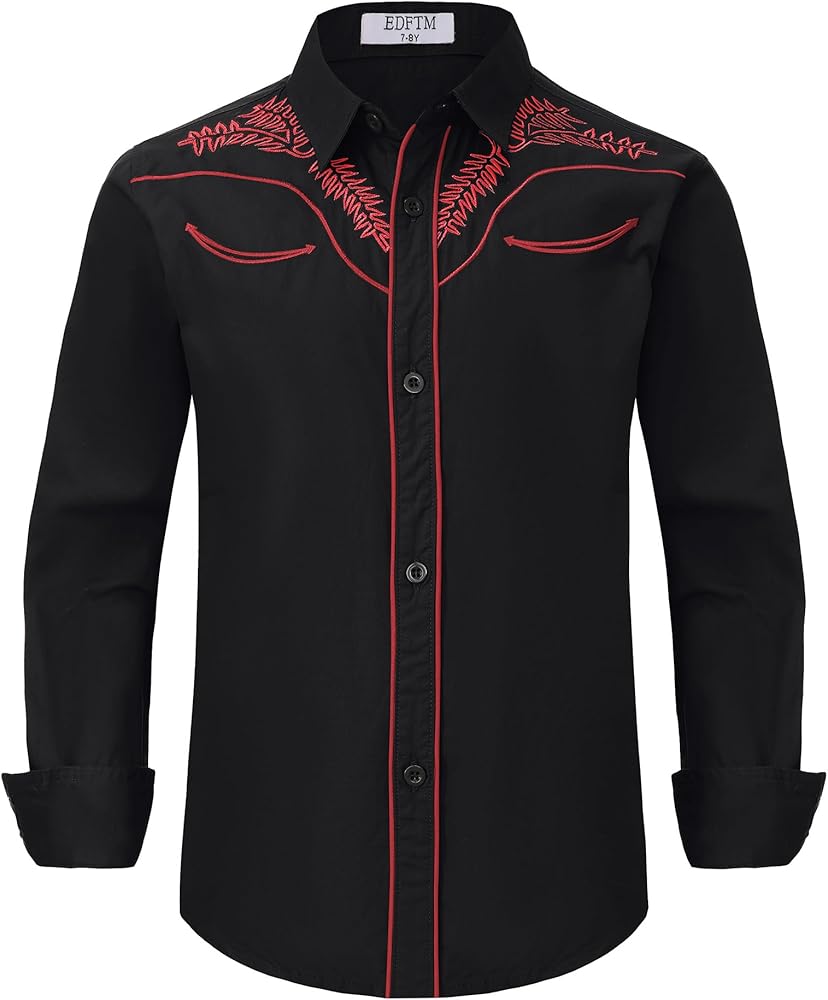 【Premium Cotton Shirt】: Boy's Western shirts are made of cotton polyester fabric and are soft, lightweight, and breathable. Boys' long-sleeved western button down shirt provide durability, functionality, and comfort.
