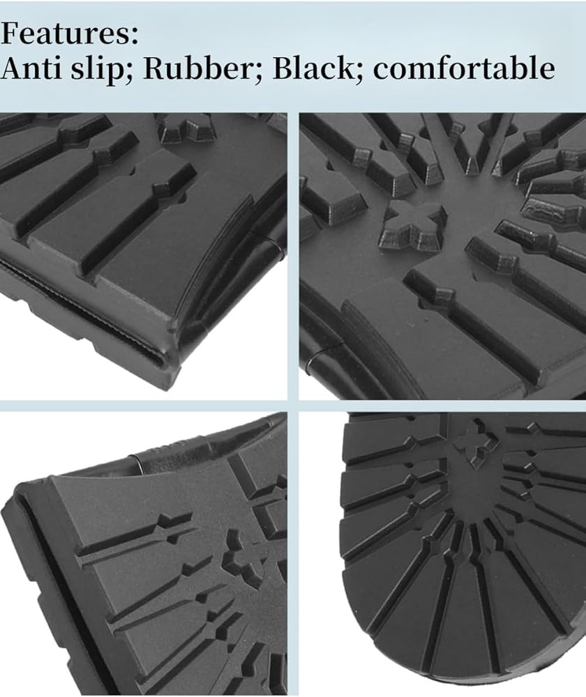 Packaging: Includes 1pair of anti slip shoe soles, with dimensions of 8.6cm * 8.6cm (3.38in * 3.38in) and a thick sole of 9mm. After receiving the packaging, simply cut the product in the middle to obtain two rubber soles. Please note that one side of the pattern should touch the ground, and the smooth side should be glued to the sole of the shoe Material: The back sole is made of rubber material, which can withstand bending, stretching, and compression, is soft and flexible, and has sufficient elasticity to keep the feet comfortable. Moreover, it is wear-resistant and can be used for a long time. Design: The leather shoes feature a raised sole pattern on the heel, which effectively increases the grip of the shoes and helps reduce the squeaking sound of the shoes. Application: These sole protectors are an ideal choice for rubber soles, suitable for various types of footwear such as hiking shoes, Martin boots, snow boots, sports shoes, casual shoes, leather shoes, and canvas shoes. Note that they are not recommended for high heels.
