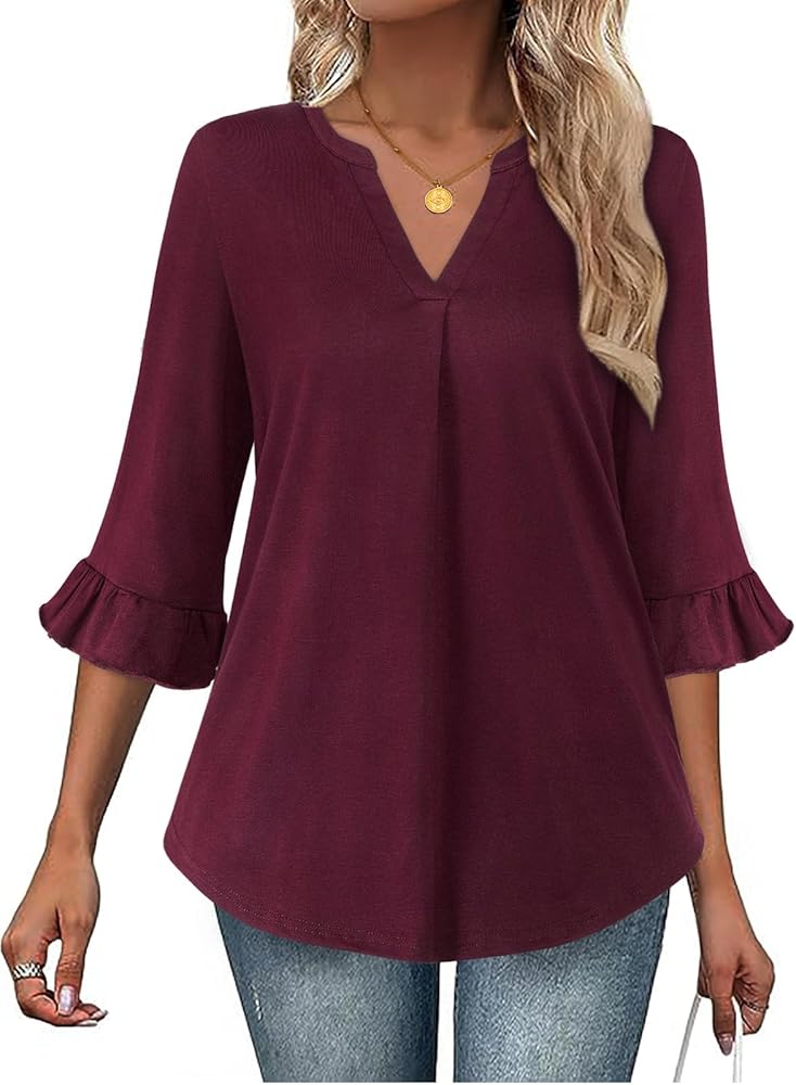 Fashionable 3/4 sleeves: The lightweight and airy 3/4 ruffle sleeve design highlights the slender forearms, lengthens the arm lines, and adds elegance. The cuffs are split, the tailoring is flexible and unrestrained, and it improves comfort