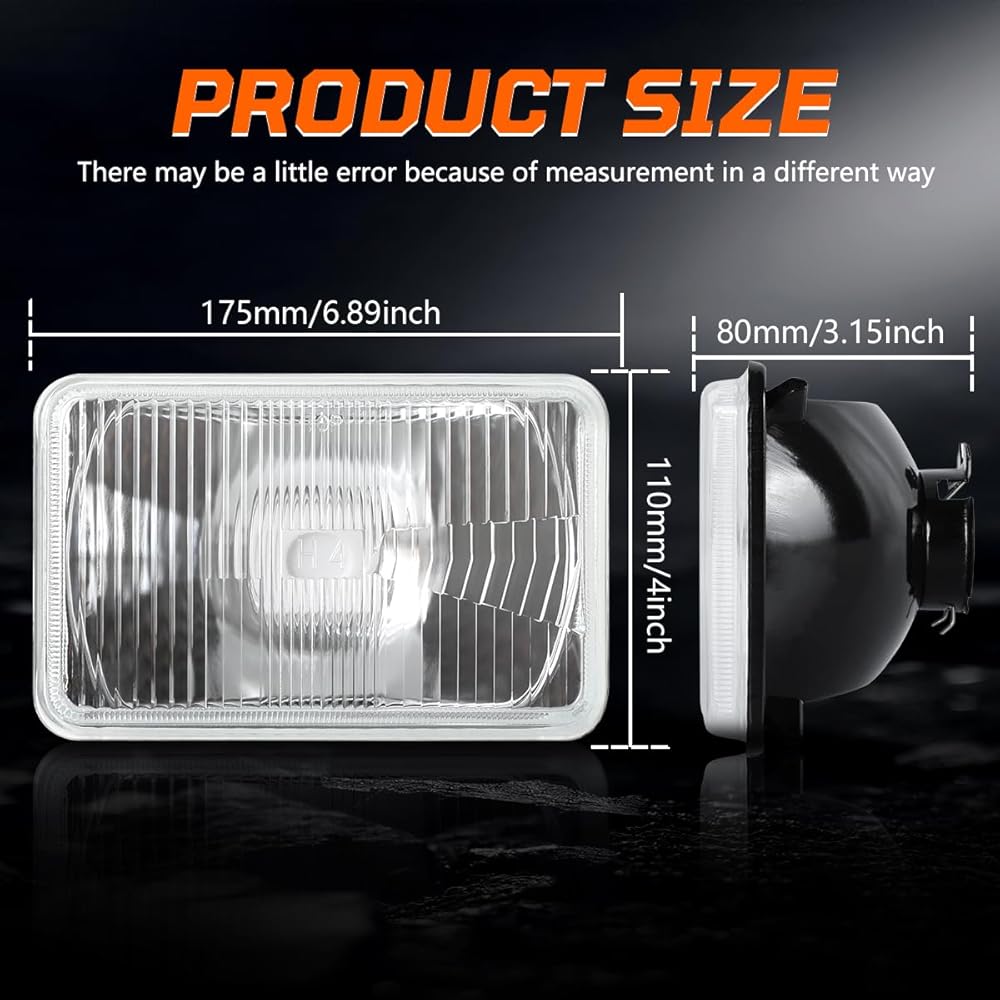 【Package Include】This item include 4pcs 4X6 H4651 Glass Square Headlight Housing and H4/9003 led bulbs. Please confirm your original housing model before purchasing.