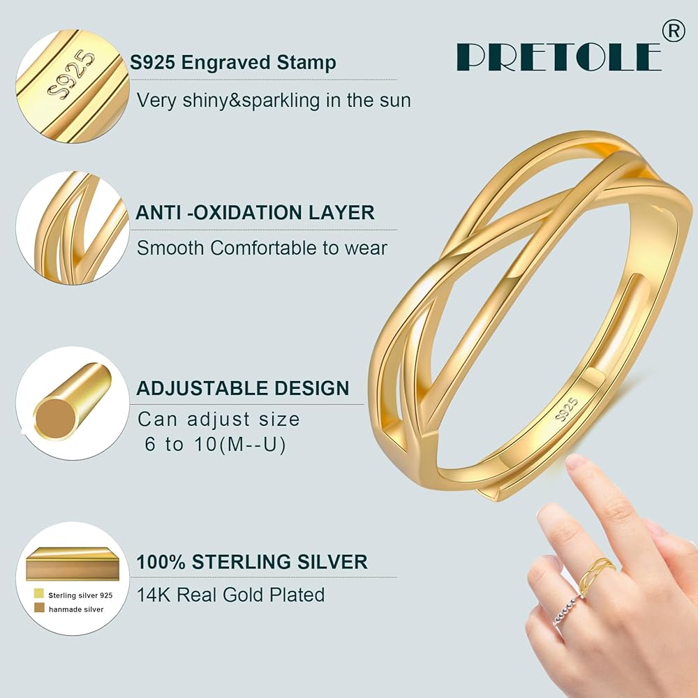 PRETOLE Sterling Silver Thumb Rings for Women S925 Silver Rings Cubic Zirconia Eternity Ring Minimalist Silver Ring Adjustable Open Ring for Women With Inspirational Card