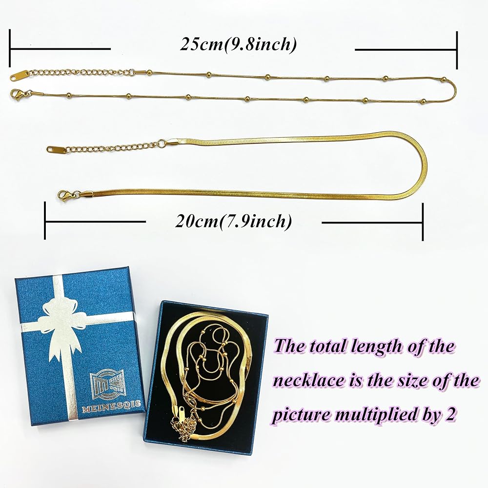 Versatile design of layered necklace for women: This gold necklace for women features a flat snake chain that can be worn alone or layered with other favorite chains for a cool and elegant look.