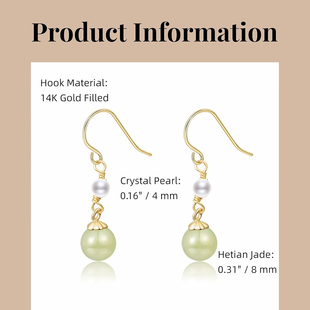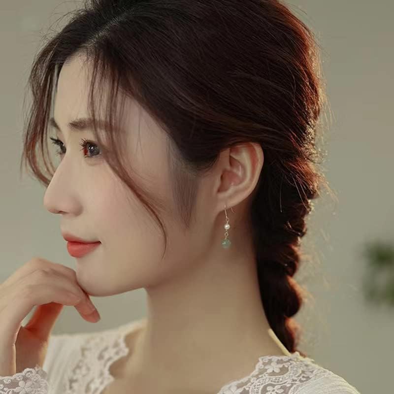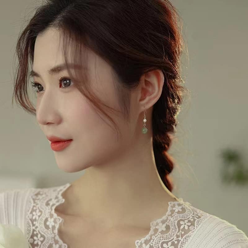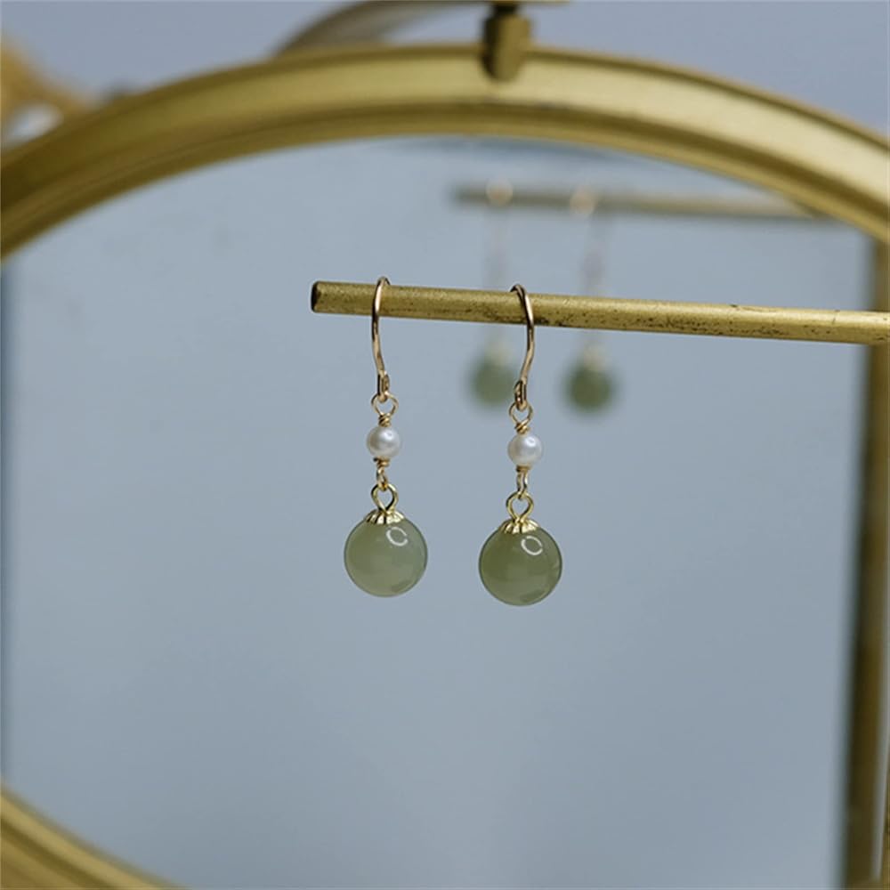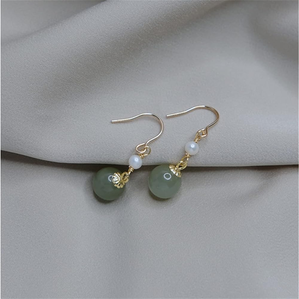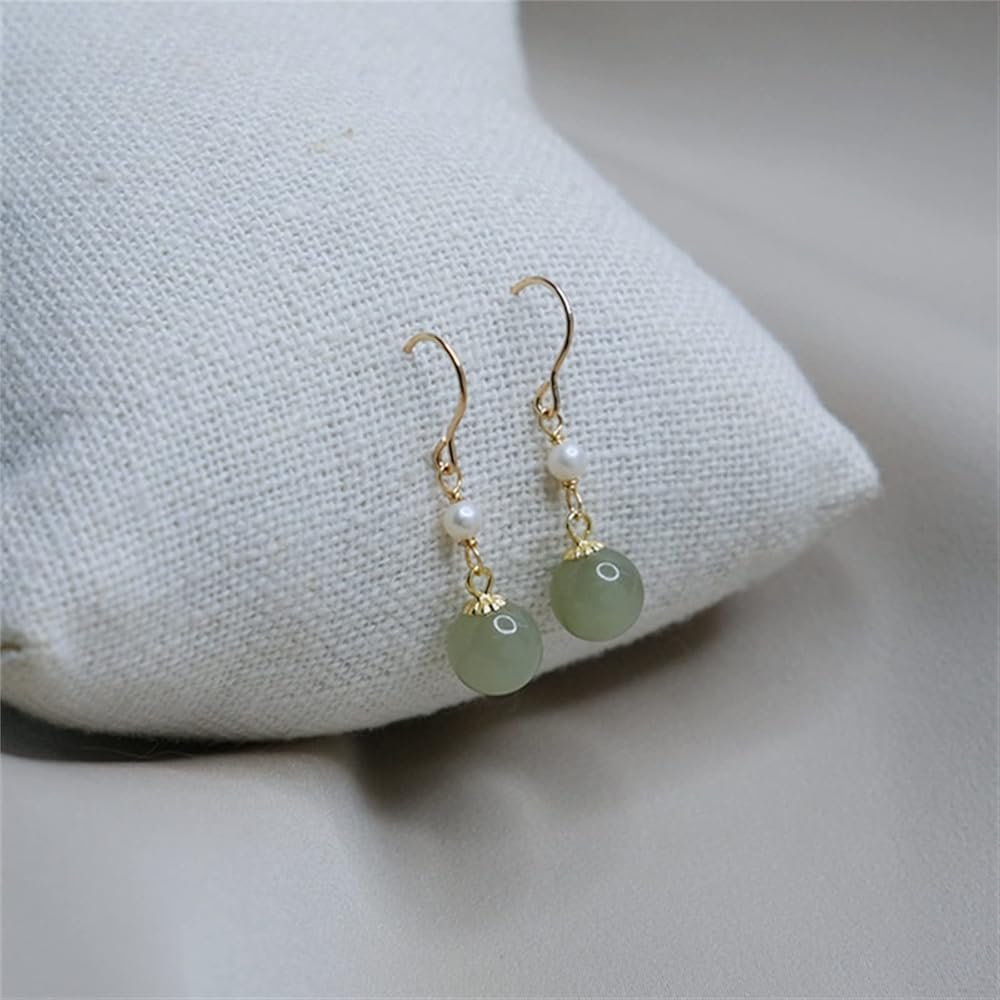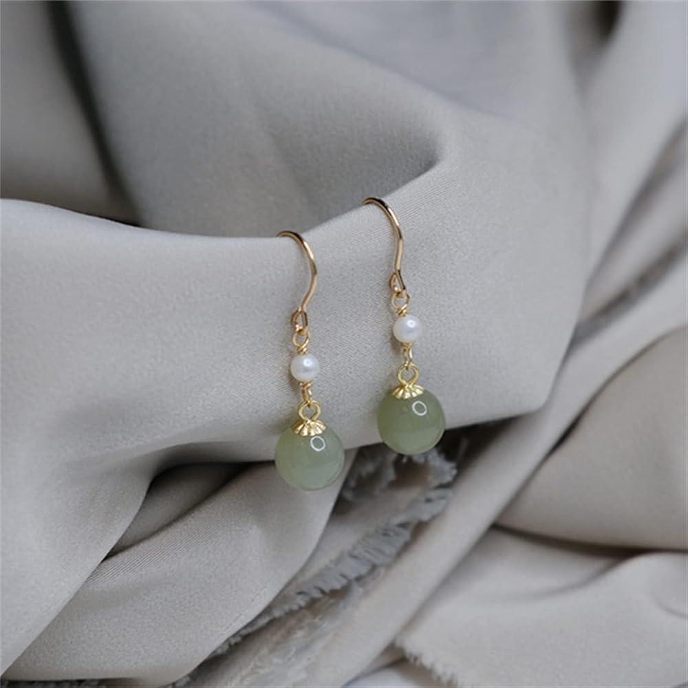 Natural Hetian Jade Earrings for Women, Dainty Lucky Green Real Jade Charm Pendant Ear Jewelry Studs, Handmade Ear Jewelry Stud Earrings Drop Earrings for Mom Lover Her