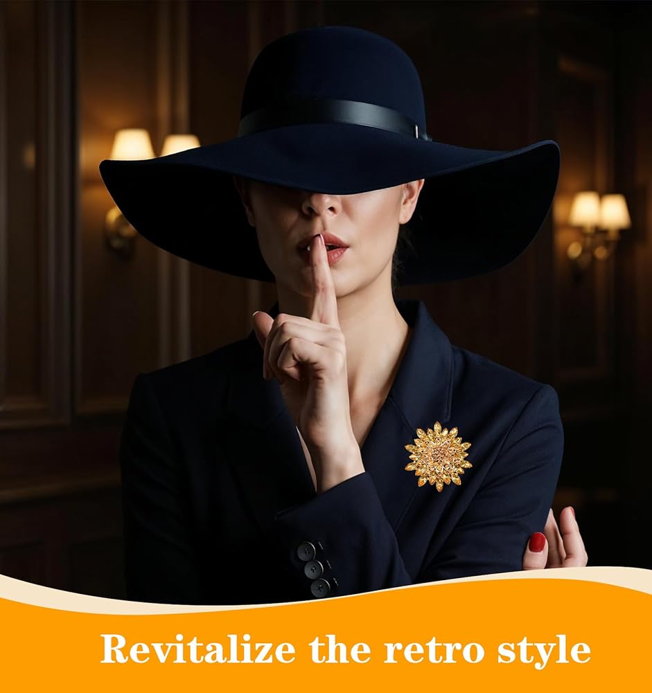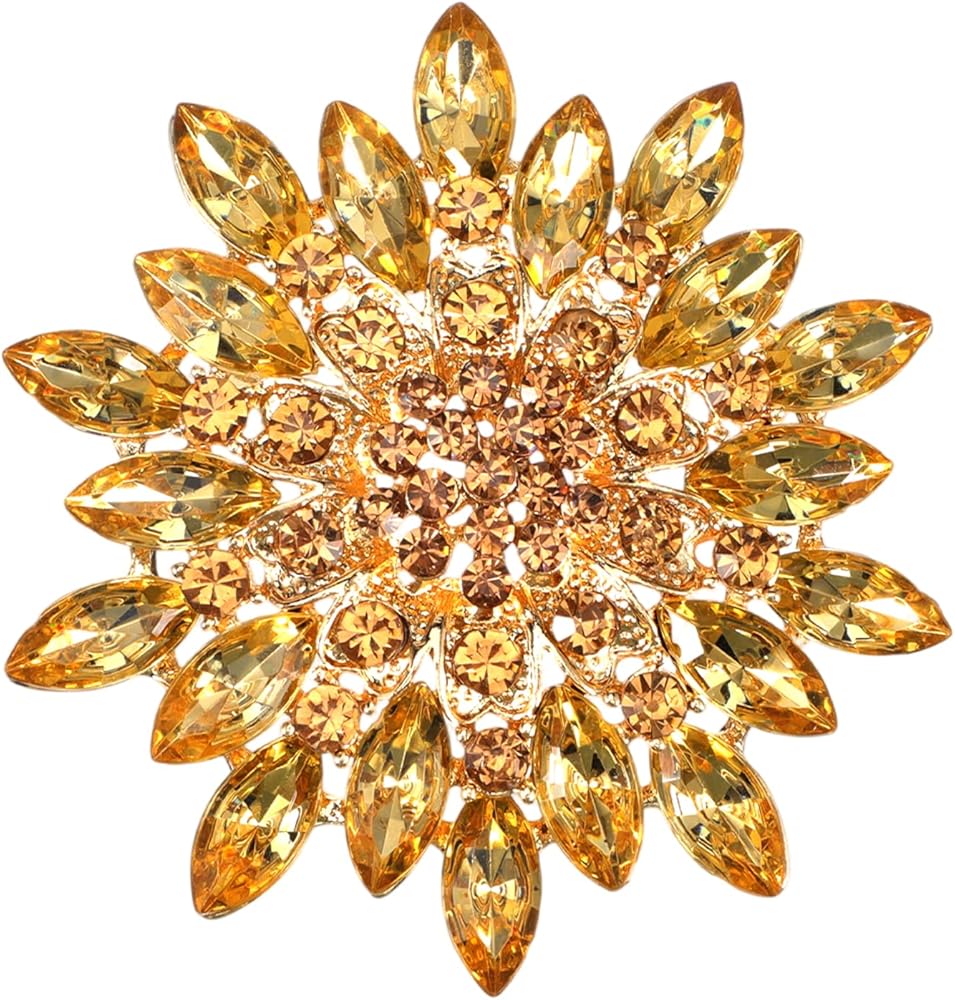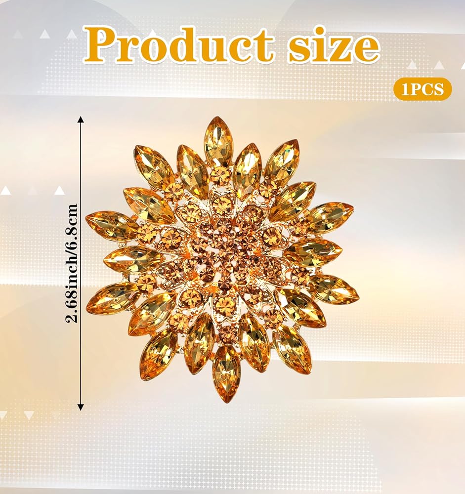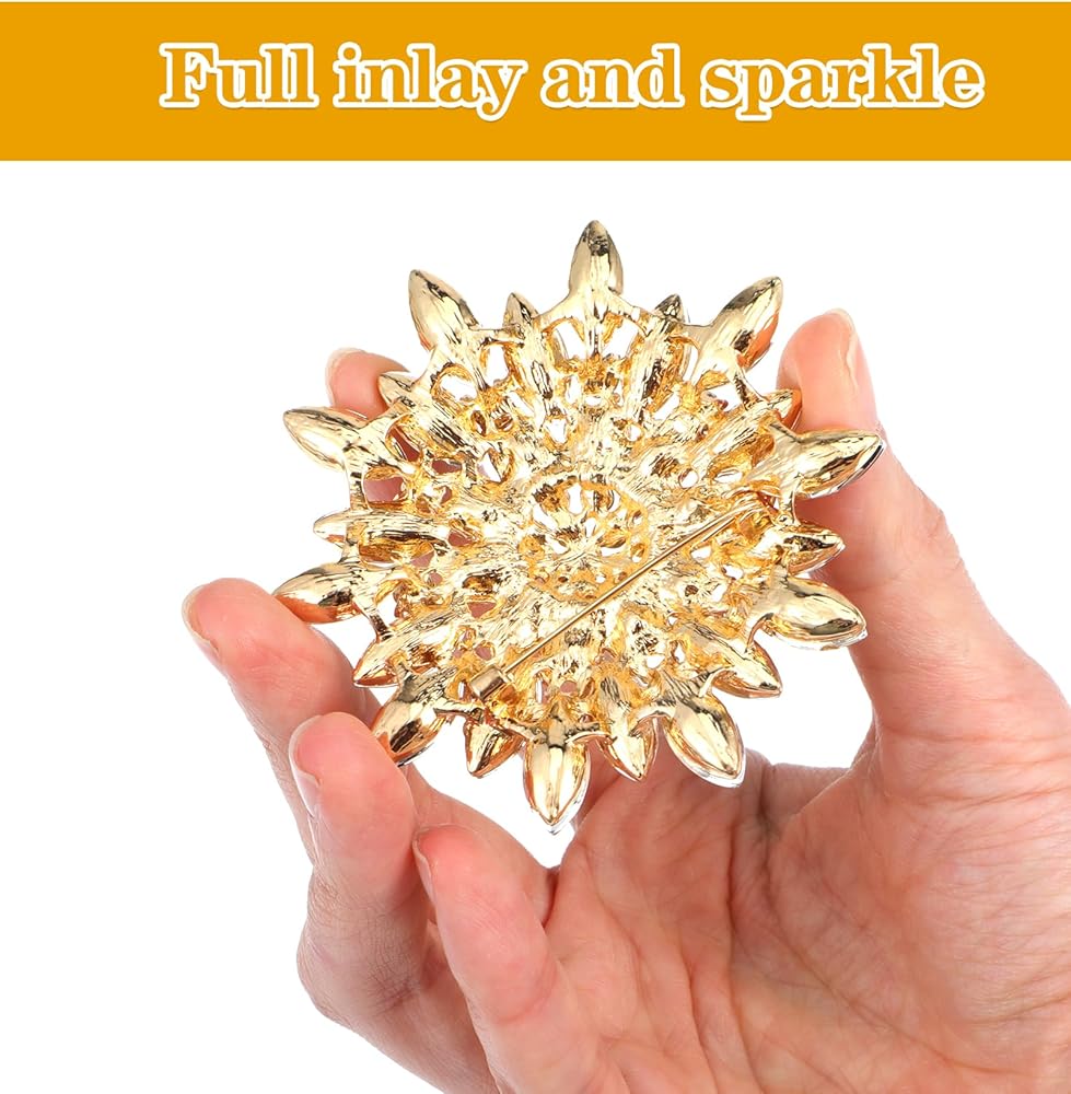 Sunflower Accent - Our gold brooch for dress adds a delicate sunflower motif with sparkling rhinestones that brightens outfits and creates a refined focal point for dresses, coats, or scarves