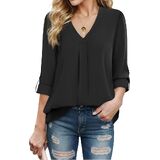 Design: The dress shirts for women trendy has Adjustable Sleeves, 3/4 length sleeves that can be adjusted to full length, chiffon blouses for women with its stylish design featuring V neck, curved hem, pleated front, making it suitable for all seasons.