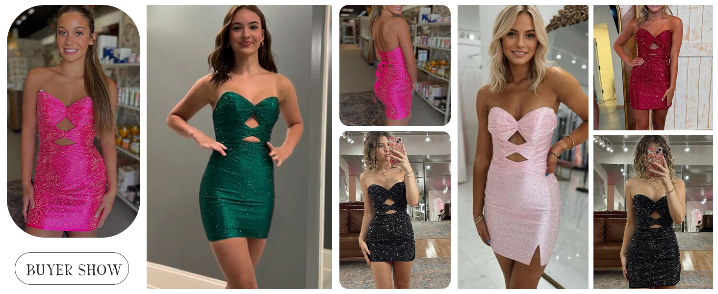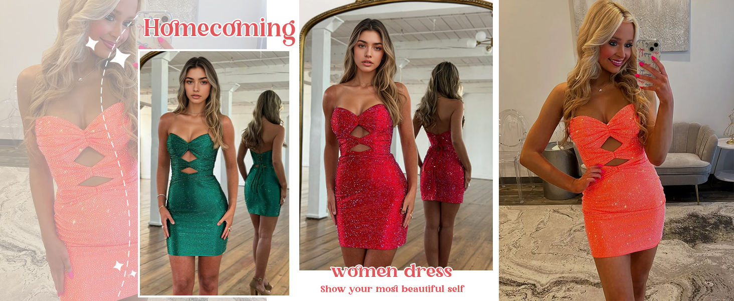 Product Features:Homecoming Dresses For Teens 2025 Short Metallic Sparkly Sequin Tight Corset Strapless Sweetheart Neck Cut Out Lace-Up Back Built-In Bras Sleeveless Backless Fully Lined Prom Dress Graduation Dress Cocktail Party Dress Birthday Party Dresses.
