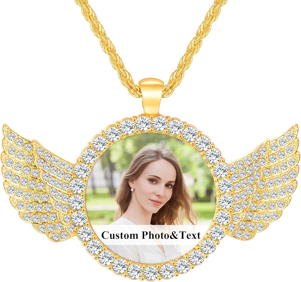 【Picture Necklace Personalized Photo】Custom picture wing necklaces, you can custom a unique pendant necklaces with your own photo or your love ones photos. Circle chain with picture is covered with one layer of protective film to prevent the image from moisture, peeling and fading. This customizable picture pendant necklace is wonderful keepsake to memorialize your family members and best friends.