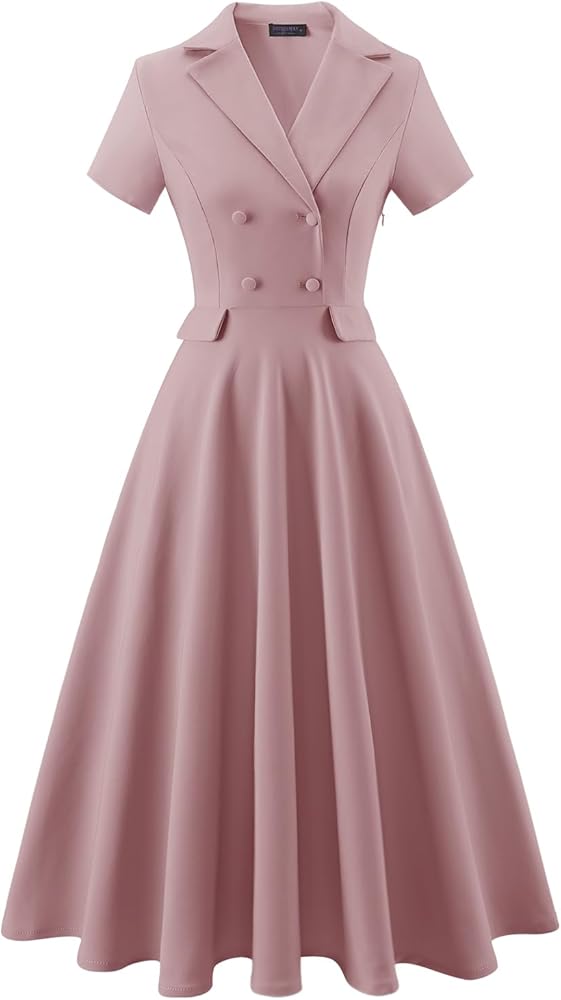 【Timeless Elegant Design】Embrace golden-era glamour with this fit-and-flared 1950s vintage dress. Features A-line swing skirt, refined lapel collar, and chic non-functional pocket detailing blend retro charm with modern sophistication