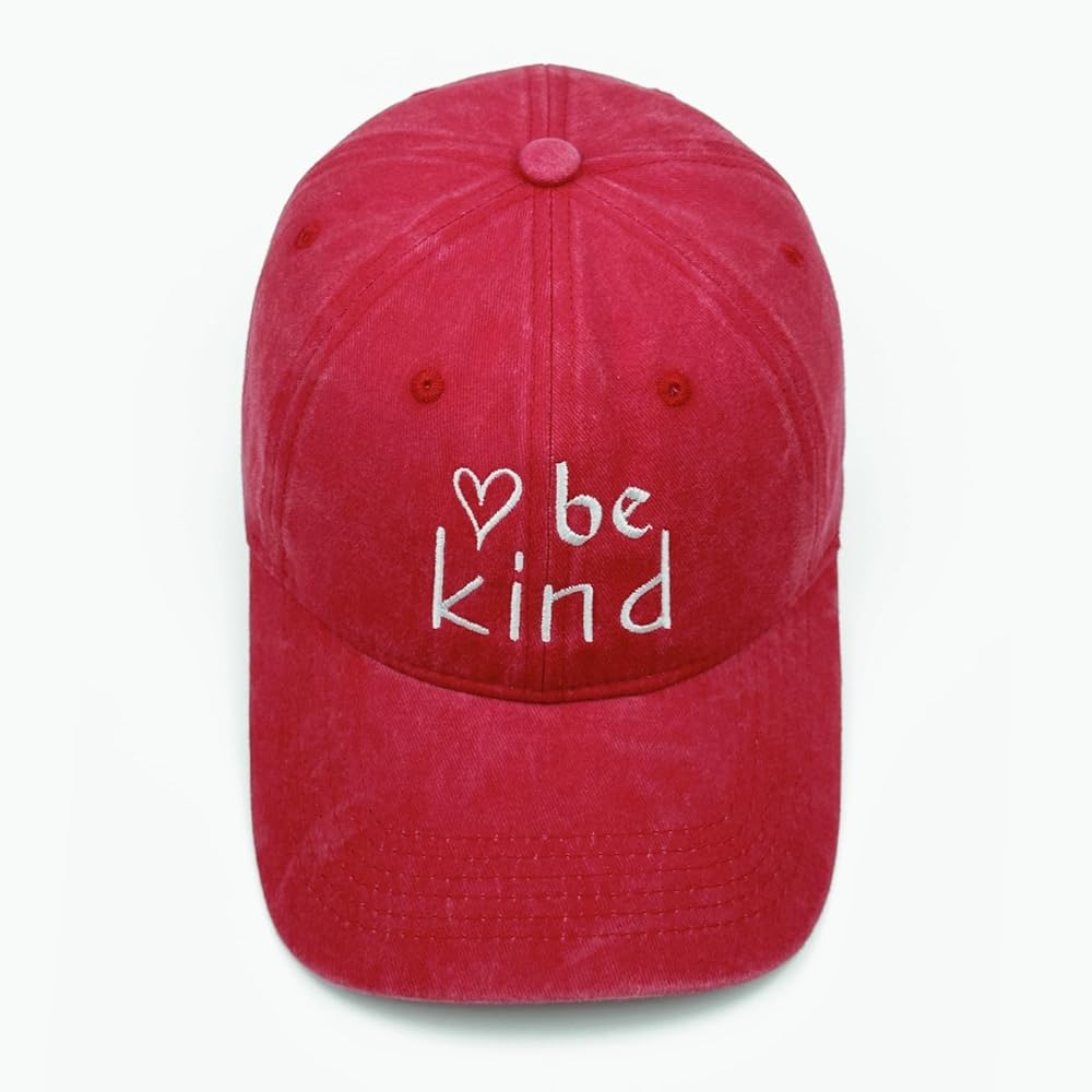 Add positivity to your everyday outfit with our "Be Kind" Embroidered Baseball Cap. Made with 100% cotton fabric, this vintage-washed dad hat offers comfort, style, and a meaningful message all in one. The breathable fabric keeps you cool on warm days, while the adjustable back strap ensures a custom fit for most head sizes (21.6"–23.6"). Featuring clean and subtle embroidery across the front, this cap complements a minimalist style that expresses kindness and positivity. Whether you're heading outdoors or relaxing indoors, it complements your lifestyle with subtle inspiration. Make a statement, lead with kindness, and express yourself with our timeless unisex cap.