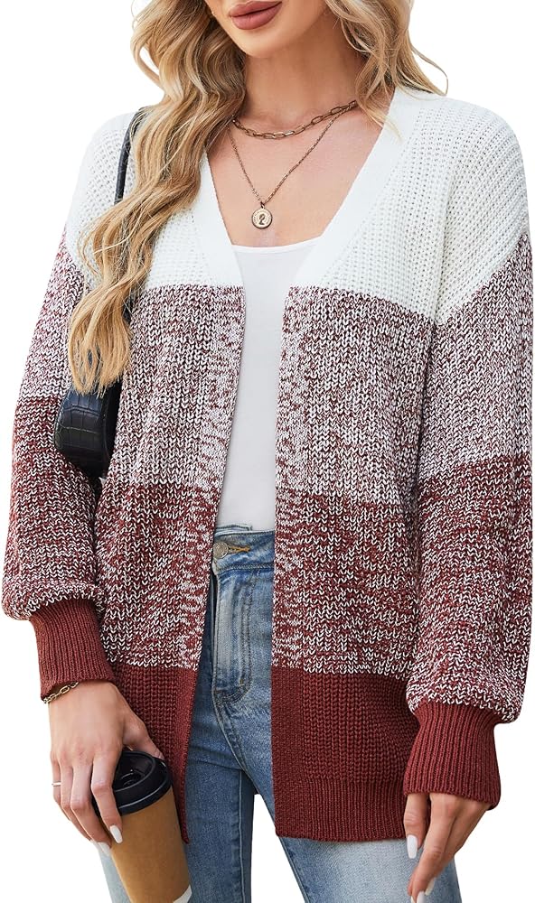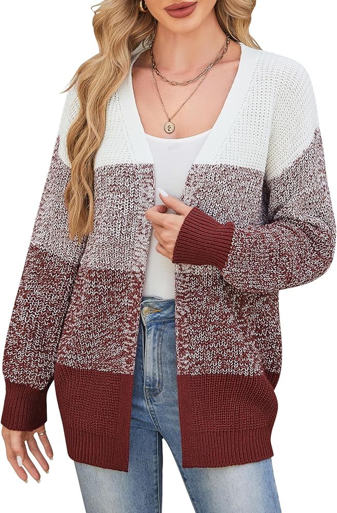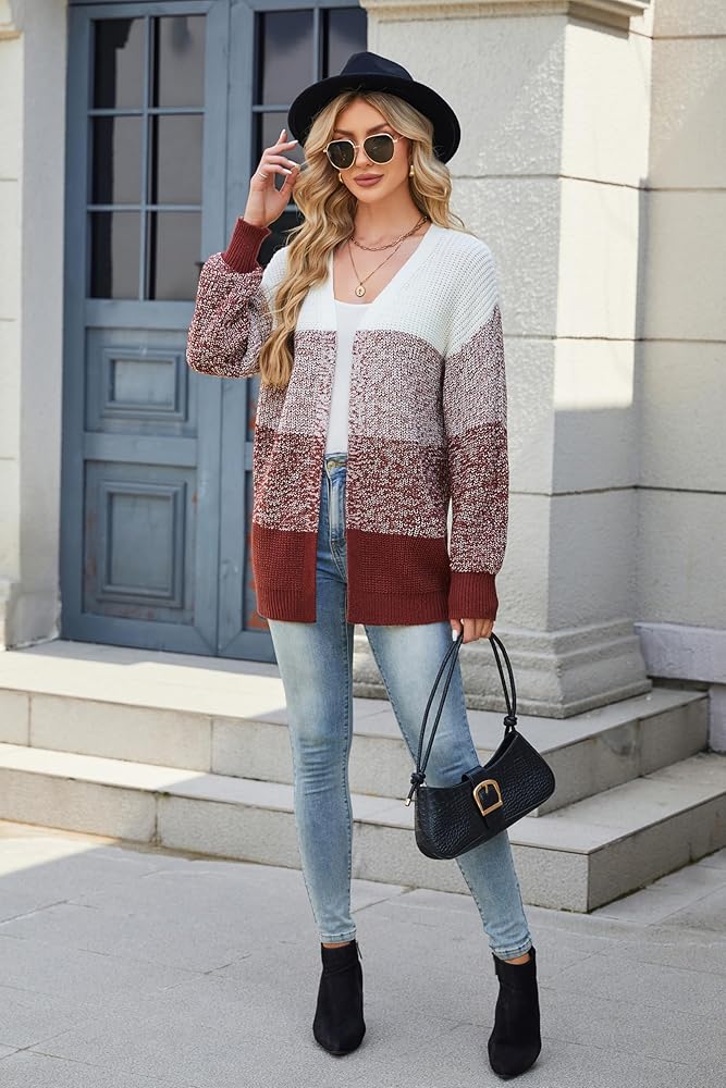Timeless Design: Open front long sleeve cardigan featuring a trendy striped color block chic desigan, this women cardigan with a classic striped color block and drop shoulder long sleeves pocket free design.The classic ribbed knits is stretch and loose fitting. It keeps you warm and stylish for fall and winter.