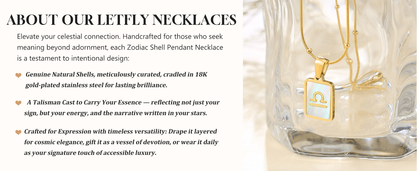 HIGH-QUALITY MATERIAL: Crafted for style and durability, the Zodiac Shell Necklace features a rectangular natural shell pendant on a sleek snake chain. Made with 18K gold-plated stainless steel, it offers lasting shine, tarnish resistance, and everyday strength