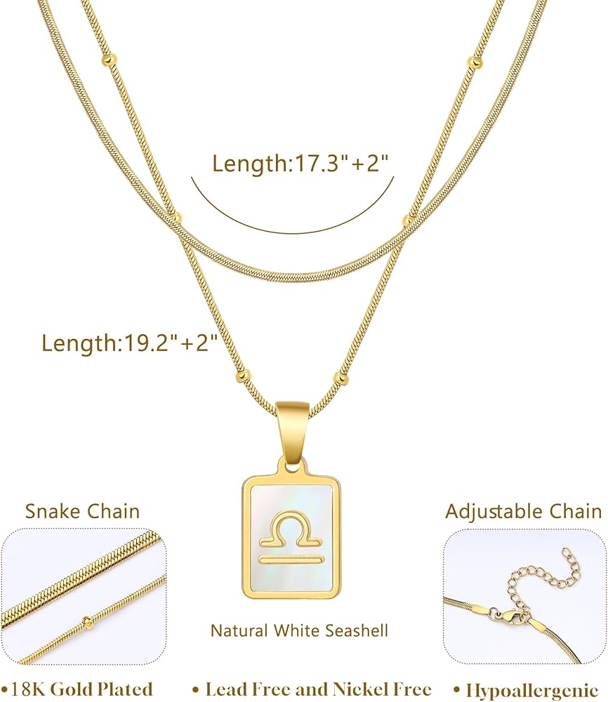 ADJUSTABLE CHAIN: This zodiac necklace features a double-layer snake chain: 17.3"+2" and 19.2"+2". Pendant size: 0.8×0.4 inch. With a secure lobster clasp, it's easily adjustable for a comfortable, personalized fit — ideal for daily wear or layered looks
