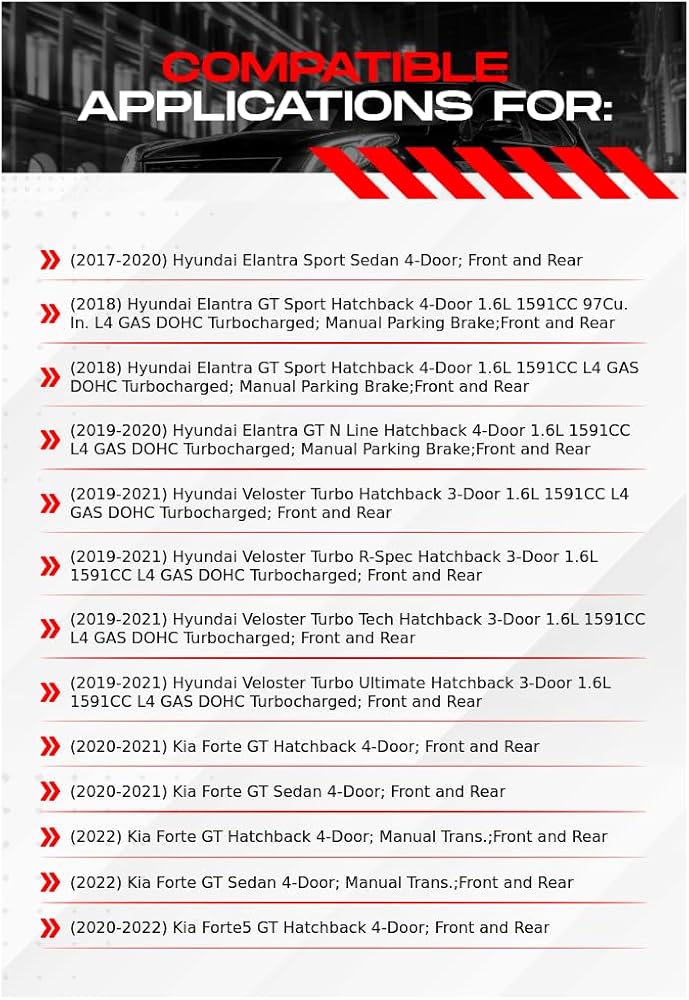(2019-2020) Hyundai Elantra GT N Line Hatchback 4-Door 1.6L 1591CC L4 GAS DOHC Turbocharged; Manual Parking Brake;Front and Rear