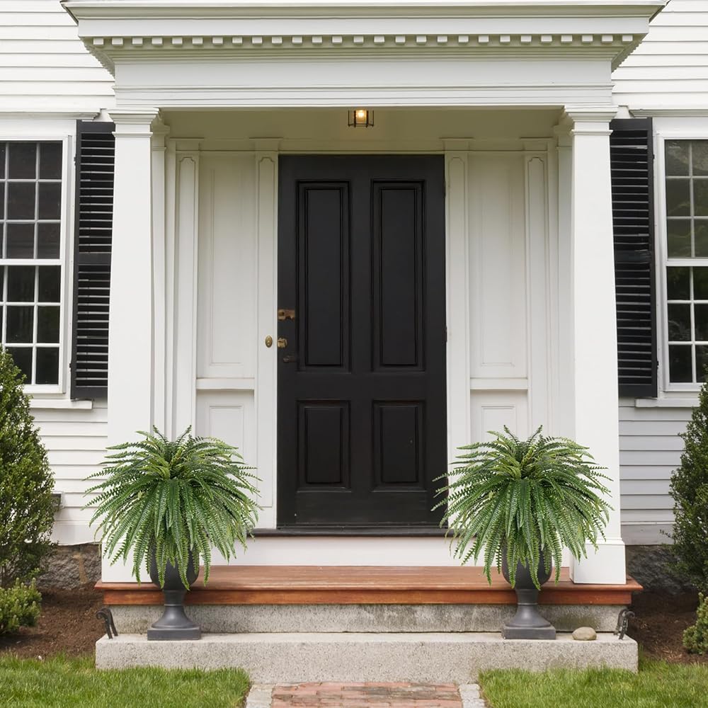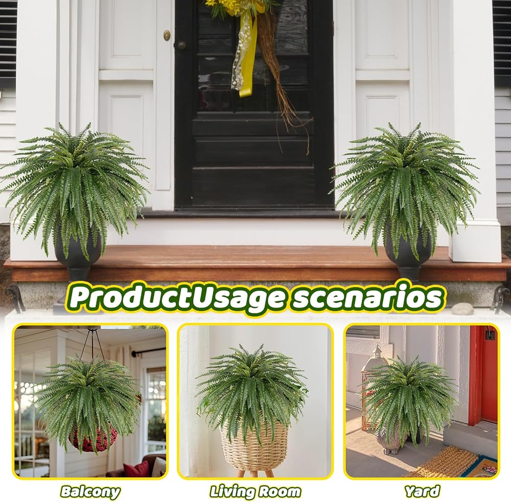 🌴【Realistic Silk & Plastic Material】Crafted from premium silk-feel fabric and plastic, this UV-resistant artificial fern features a durable, washable construction that maintains its vibrant color outdoors. Ready to use instantly.