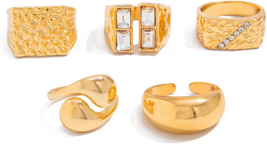 Rings for Women Adjustable Chunky Rings Set Vintage Wide Colorful Flower Stackable Ring for Women Thick Statement Ring Chunky Jewlery