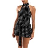 - Feature: Polka dots print, halter, backless, sleeveless, a line, mini dress with scarf, summer dresses for women, fashionable