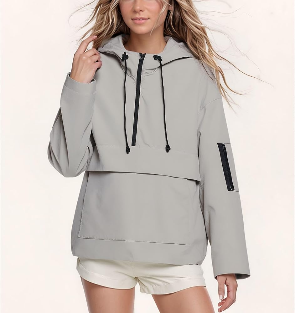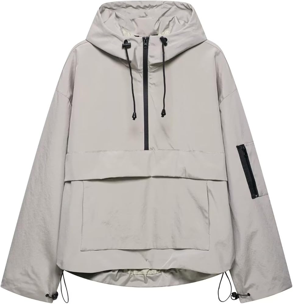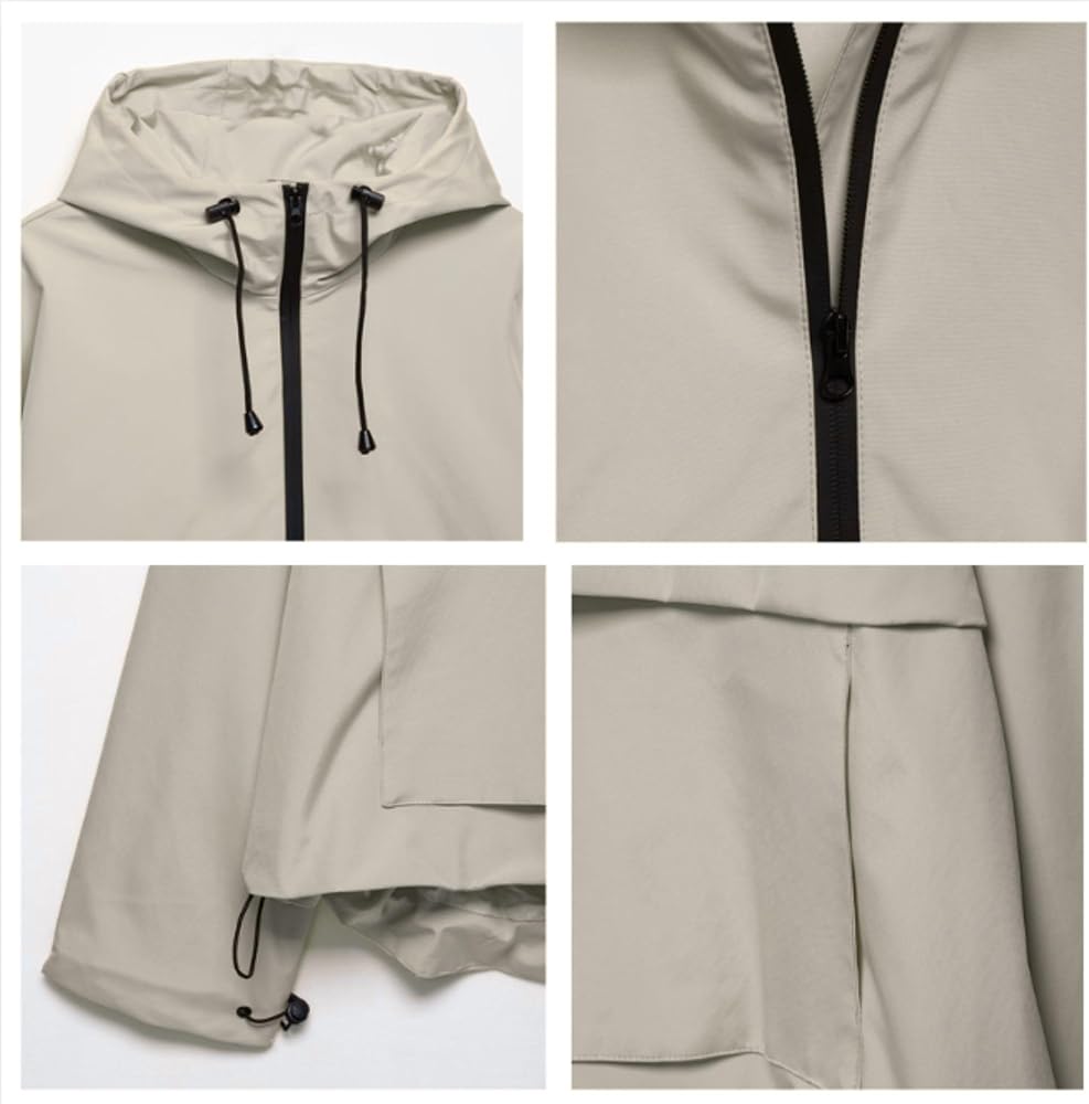 Oversized streetwear style made with waterproof fabric, featuring an adjustable drawstring hood and kangaroo pockets for a relaxed fit. Available in multiple colors