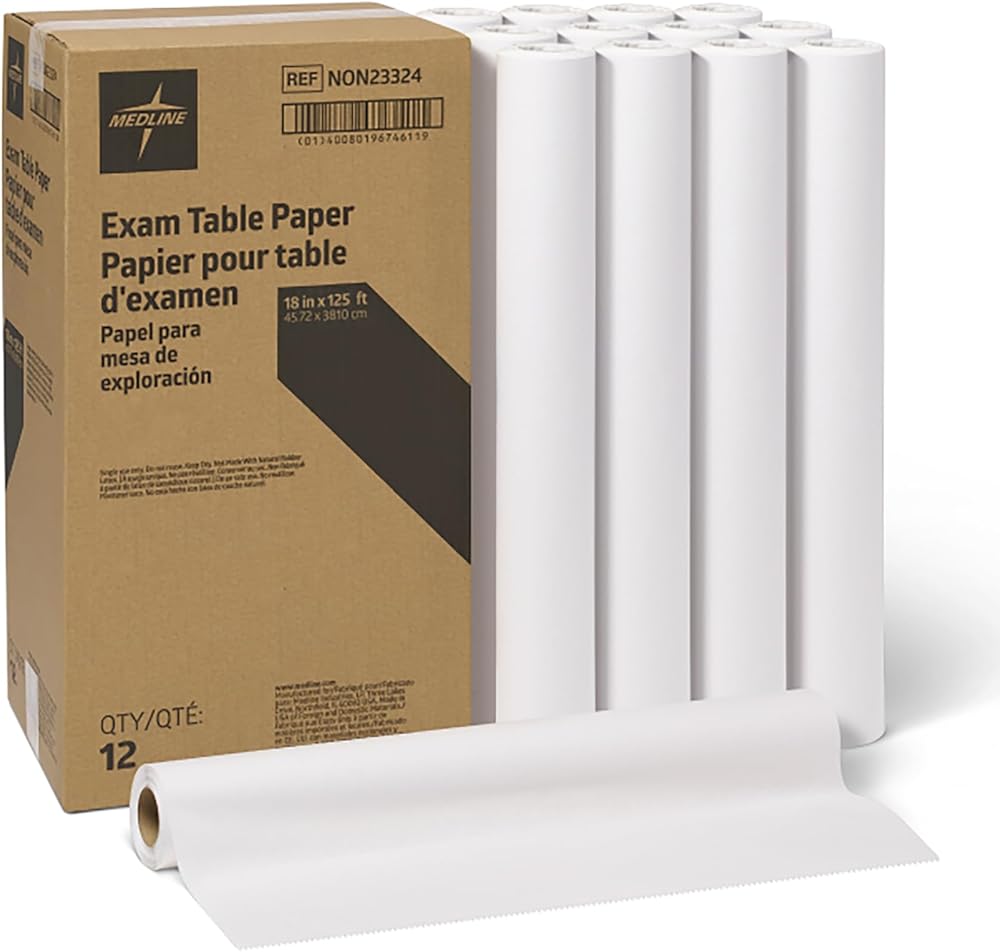 Medline Medical Exam Table Paper, Crepe Table Paper, 18 inches X 125 feet, Case of 12 Rolls