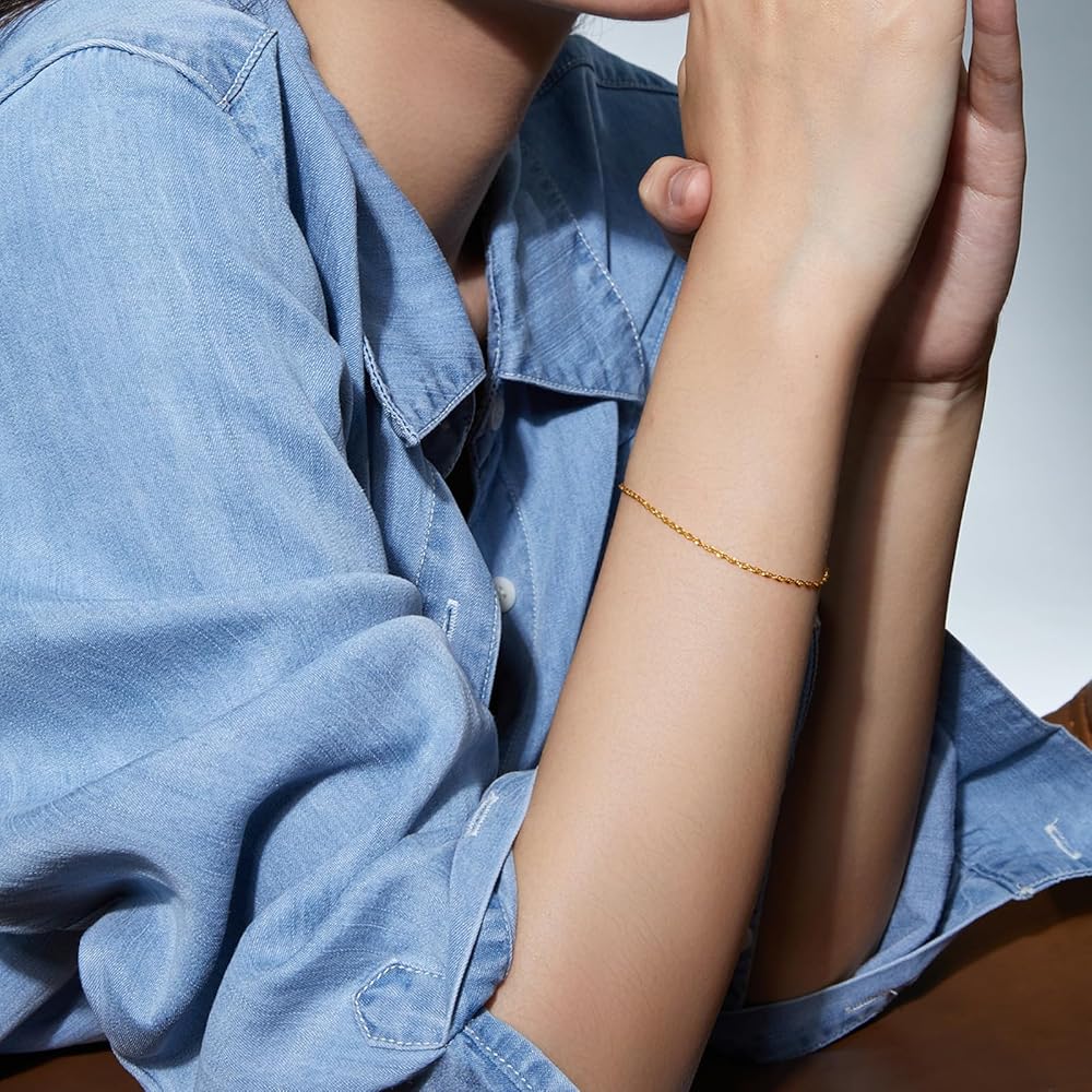Real Gold Bracelets for Men: We have focused on the inherent purity of the metal itself. By utilizing only the finest grade of 24K solid gold, which boasts a remarkable 999 purity level, we emphasize its unrivaled quality and value. The brilliance and radiance of the 24K gold captivate the eye, making it an excellent investment and symbol of prosperity. Size of dainty gold bracelet jewelry to adjust from 6.3 inch to 7.1 inch, for your wrist to fit perfectly.