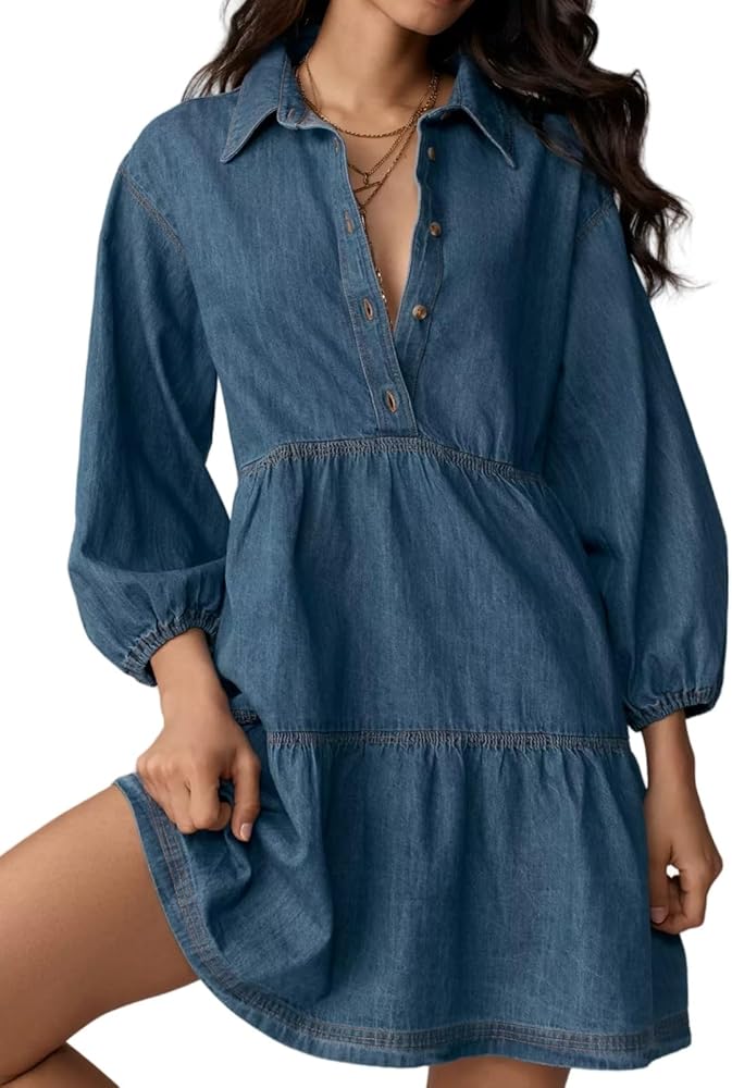 🌺【Easy Match】: The 3/4 sleeve denim dress perfect for matching with high heels, sandals, flats, fashionable boots, etc.