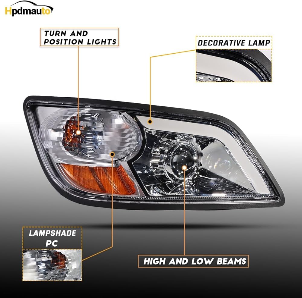 High-Quality:Hino headlight constructed with durable polycarbonate lenses,lightweight and durable.Meets DOT & SAE Standards.