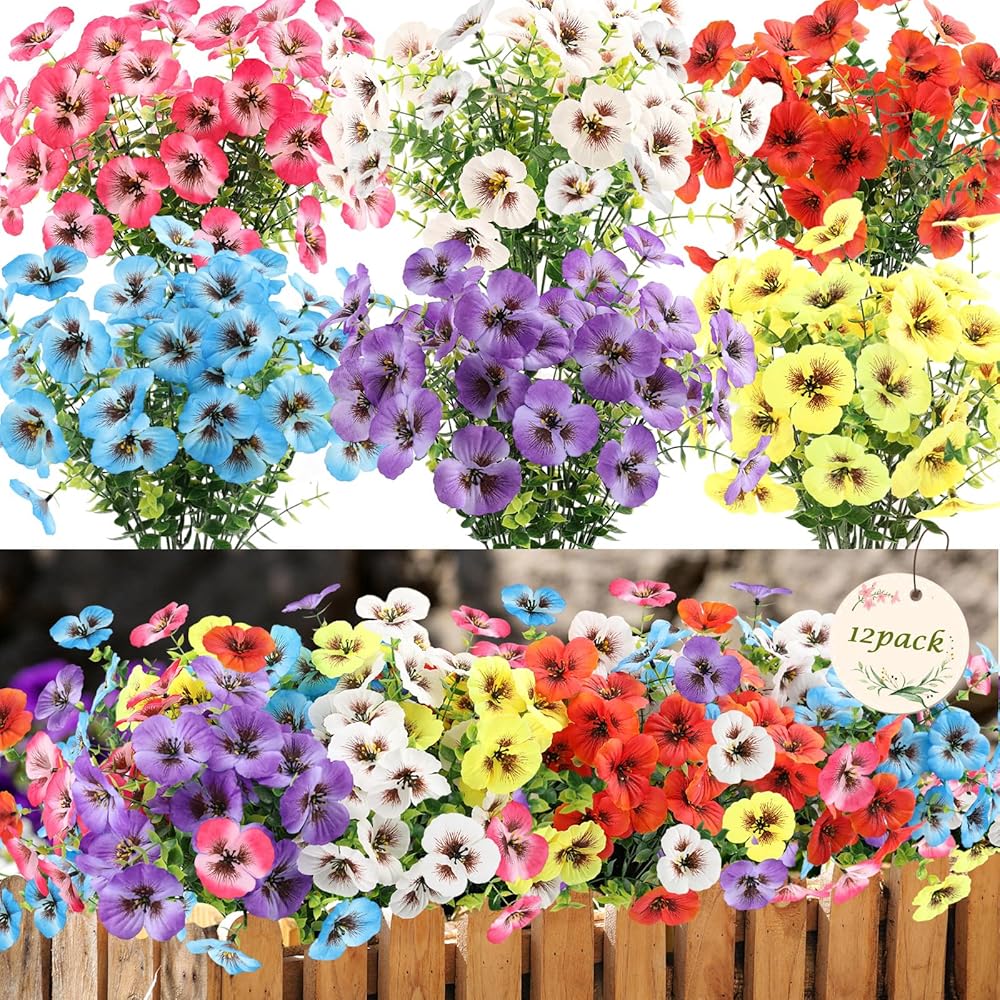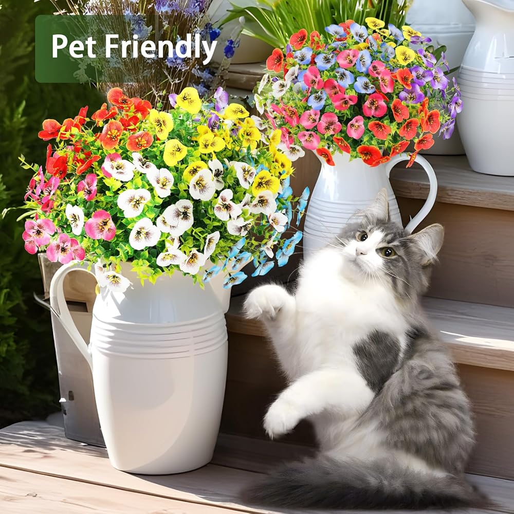 Flexible & Easy to Arrange Faux Flowers: Each artificial pansy flowers features soft, bendable branches that can be easily adjusted to suit your decor style or mood. Fluff them up to create a full and lush bouquet, then place them in vases, pots, or hanging baskets. These fall faux flowers outdoor are perfect for both small DIY arrangements and large seasonal displays
