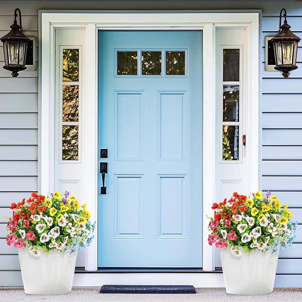 Premium Quality & 0 Maintenance: 12 bundles artificial outdoor plants are made from durable plastic, these faux plants require zero upkeep—no watering, trimming, or sun exposure needed. They can withstand cold winters and hot summers effortlessly, making them ideal for year-round display. Allergy-friendly and perfect for busy individuals who love flowers but lack the time for maintenance