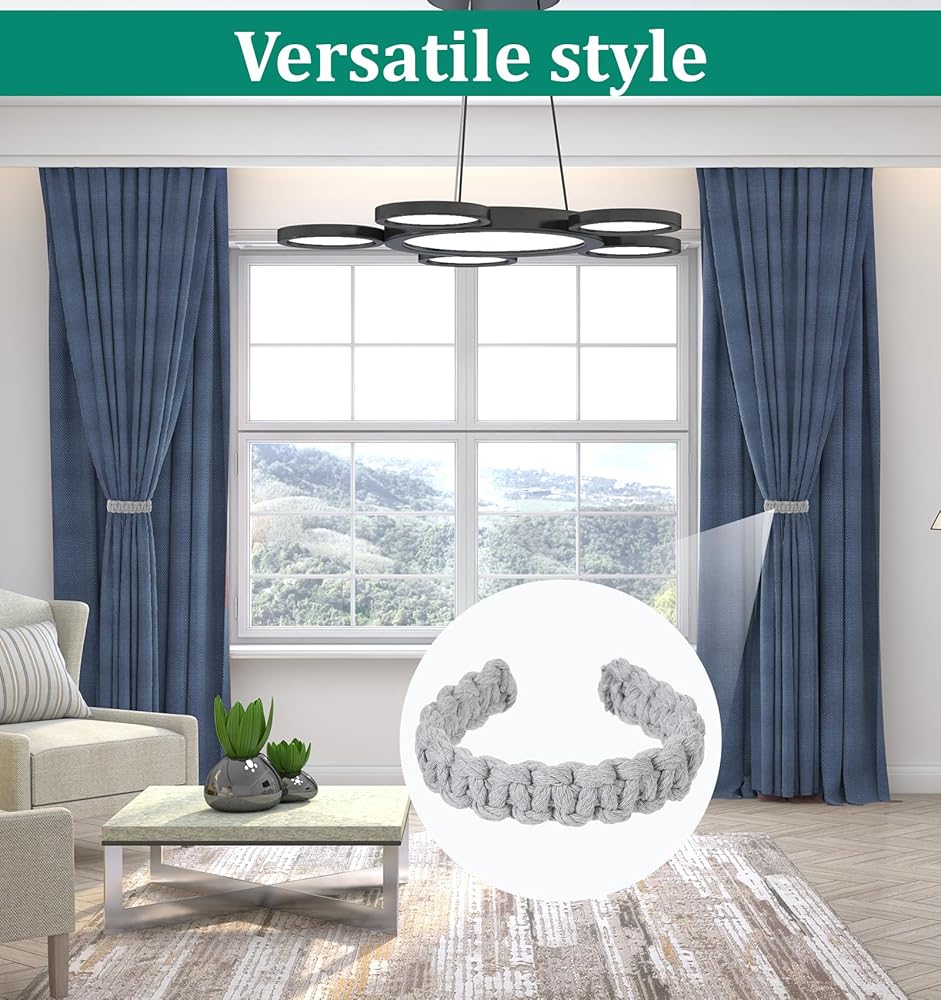 Multi-Environment Use - Perfect for various settings, our grey tie backs for curtains 2 pack are suitable for farmhouses, living rooms, bedrooms, and even outdoor areas, accommodating different curtain styles;